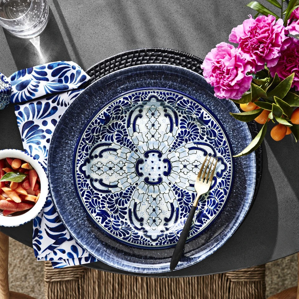 Crafted according to Talavera de Pueblatradition by one of Mexico’s premier ceramic makers, our Azulete salad plates feature a classic design from the 19th century. Each piece is made from high-fired black and white clays, handpainted with intricate cobalt designs and finished with a clear, protective glaze.