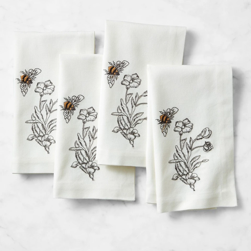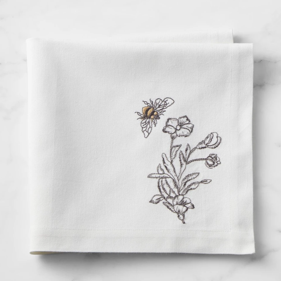 Both whimsical and elegant, our hive-inspired table linen adds a sweet note to any occasion. Featuring an embroidered bee and honeycomb in the corner, the napkins are woven of sustainably sourced cotton and complement a wide array of tableware.