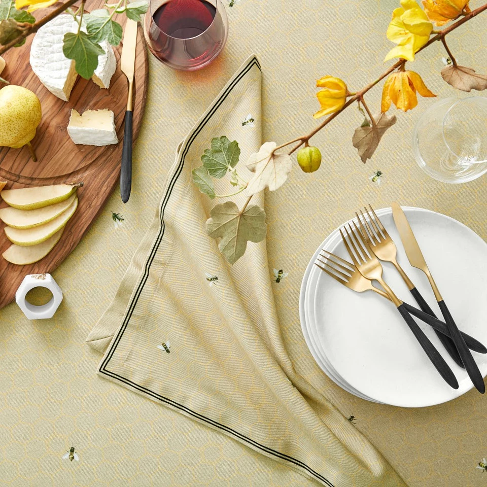Tuscany is renowned for both its millefiori honey and premium textiles, which is why it’s so fitting that this table linen collection is woven for us at a family-owned mill in Florence, Italy. Our cotton twill tablecloth is expertly printed with a flax-hued honeycomb pattern, abuzz with colourful bees.