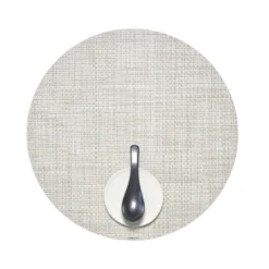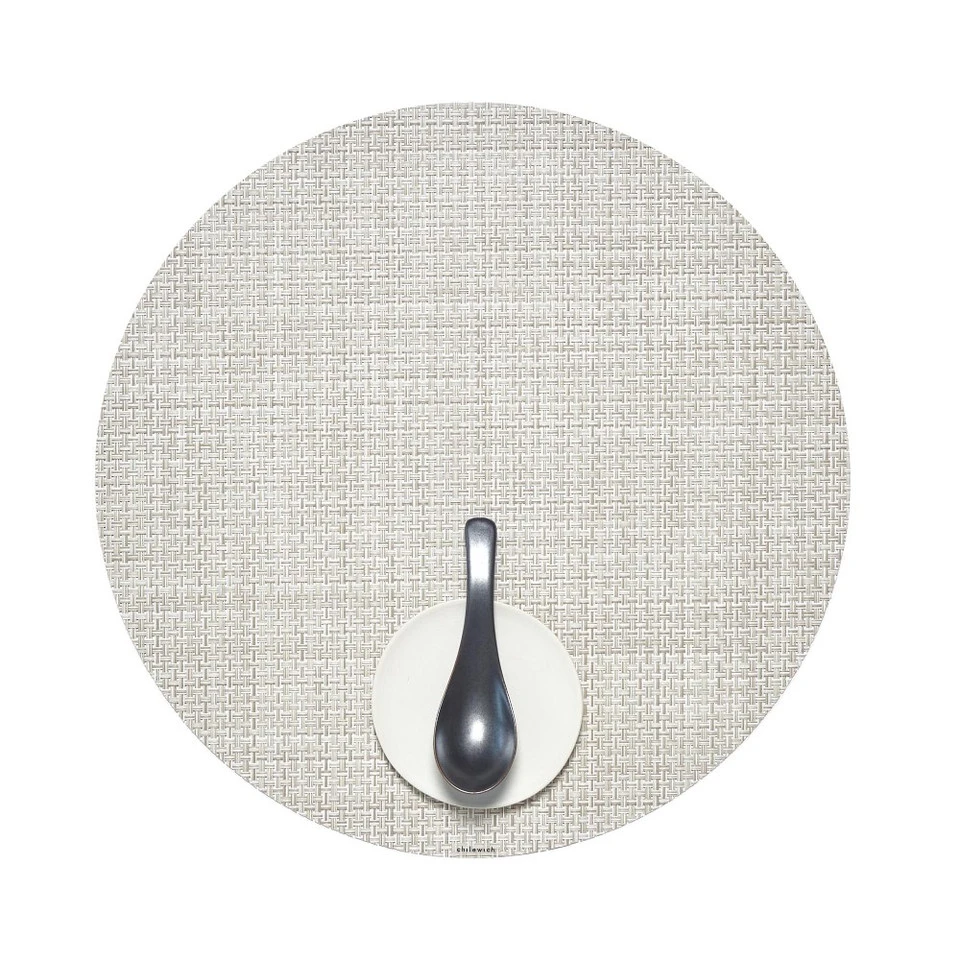 Woven in a classic basketweave with tonal variations, our placemat brings subtle texture and colour to the table. Its round shape provides a stylish charger-like accent to modern and traditional dinnerware while protecting tabletops from drips and spills. Great for both indoor or outdoor dining, the durable vinyl mat is a breeze to clean.