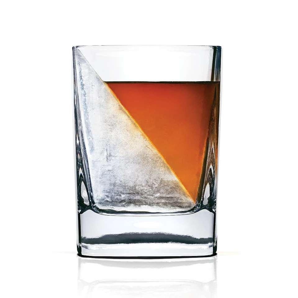 - Set includes double old-fashioned whiskey glass and wedge-shaped ice mold.