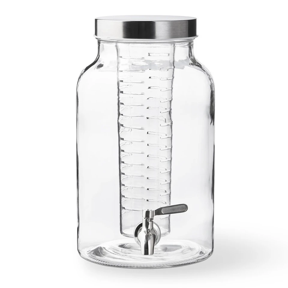 Our cylindrical glass dispenser puts the focus on a flavour with an internal infuser for holding fruits and vegetables. Perfect for making and serving refreshing drinks like cucumber water and sangria, the dispenser is outfitted with features to keep parties flowing, including a stainless steel, easy-fill lid and non-drip spigot.