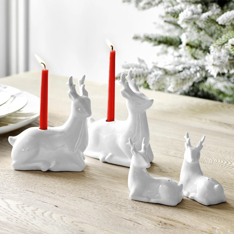 With their sculpted style and fresh white glaze, our deer salt and pepper shakers add cheer and charm to the table. They layer easily with your favourite festive dinnerware and table linen for entertaining.