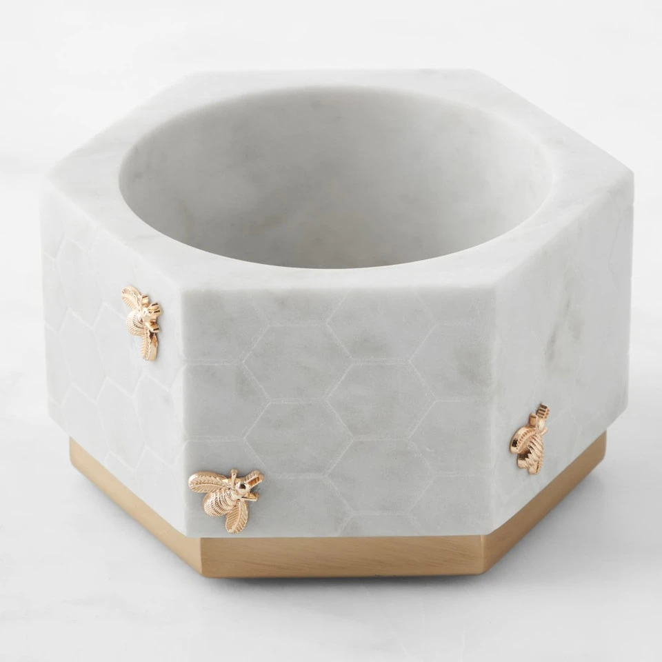 Add a sweet touch to gatherings with our handcrafted wine coaster. Adorned with golden honeybees and honeycomb-patterned etching, the marble coaster is distinguished by the stone’s rich hues and intricate markings. Use it to serve everything from crisp whites and dry rosés to full-bodied reds.