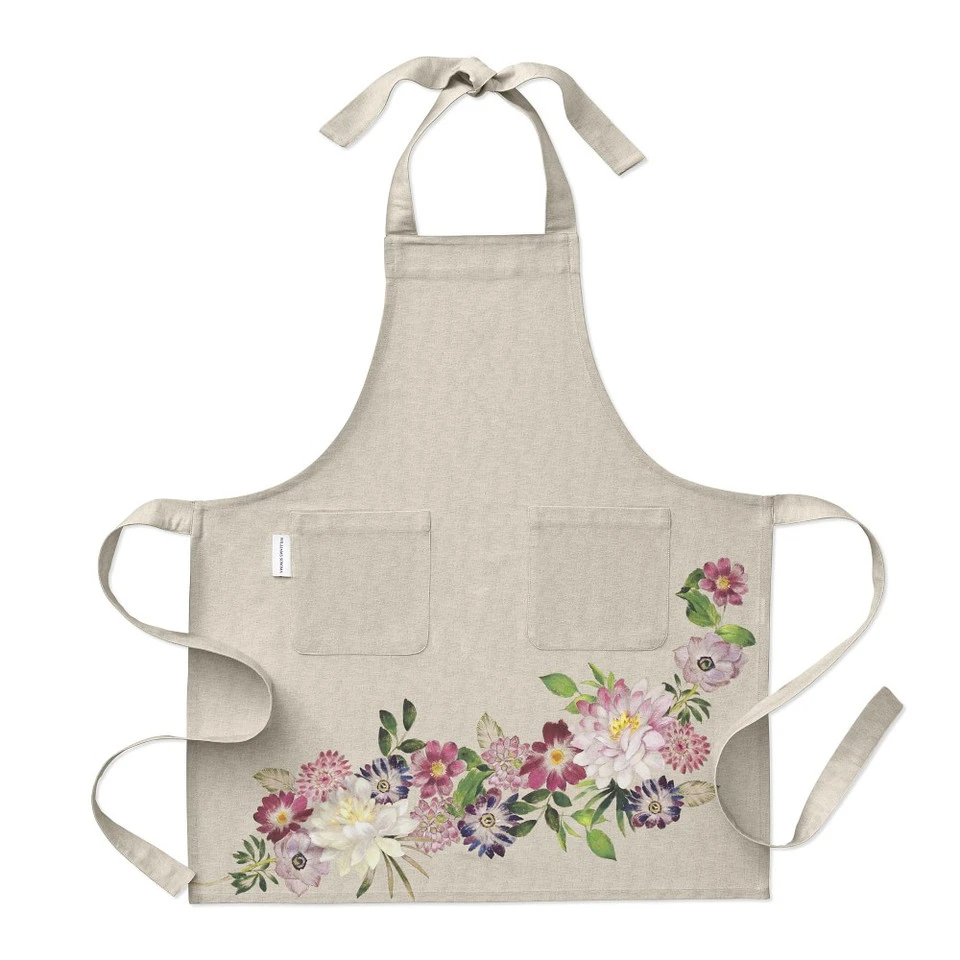 With its exquisite pink blooms on a flax-coloured background, our apron looks like it’s sewn of handpainted linen. Master weavers in Italy print our original design onto premium twill-weave cotton, then tailor it with a generous pocket for stowing tools.