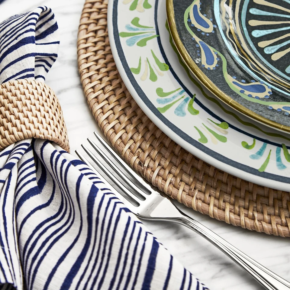 Hand woven of durable rattan, this round charger adds natural colour and texture to the table. Its versatile style creates a neutral backdrop for both white and vibrant dinnerware.