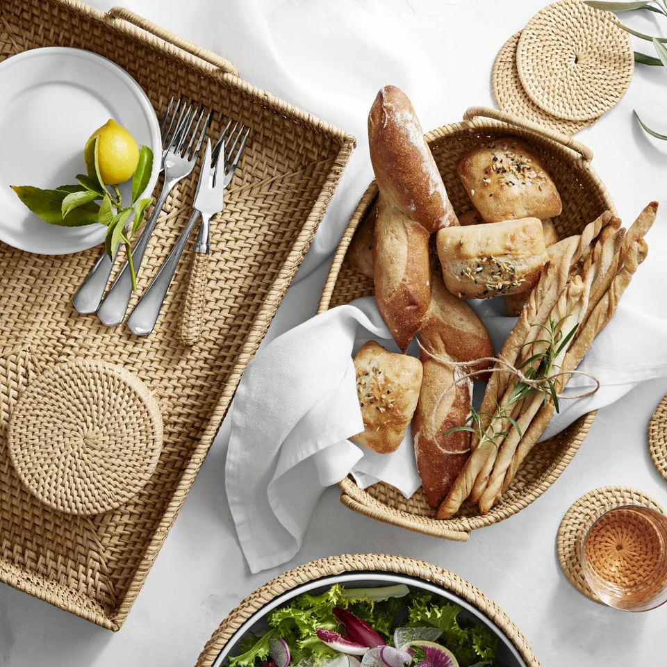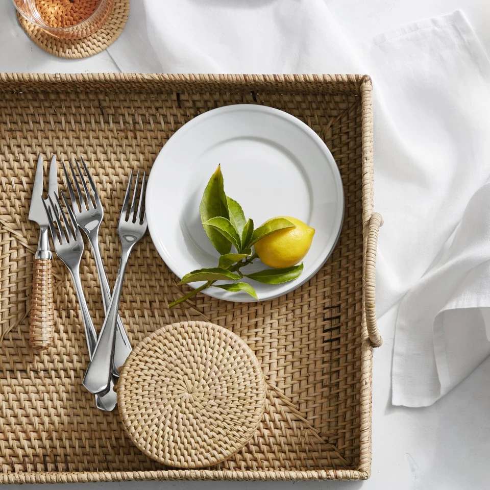 Our coasters bring organic beauty and texture to every room of the house. Crafted of durable rattan, they’re expertly woven by hand. The coasters feature a neutral hue that works well with a range of interior design styles. The set of six comes with a matching holder for storage.