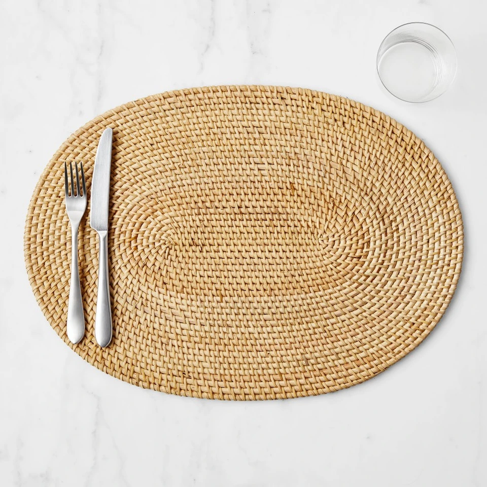 Handwoven of durable rattan, our oval placemat adds natural colour and organic texture to the table. Its versatile style creates a neutral backdrop for both white and vibrant dinnerware patterns.