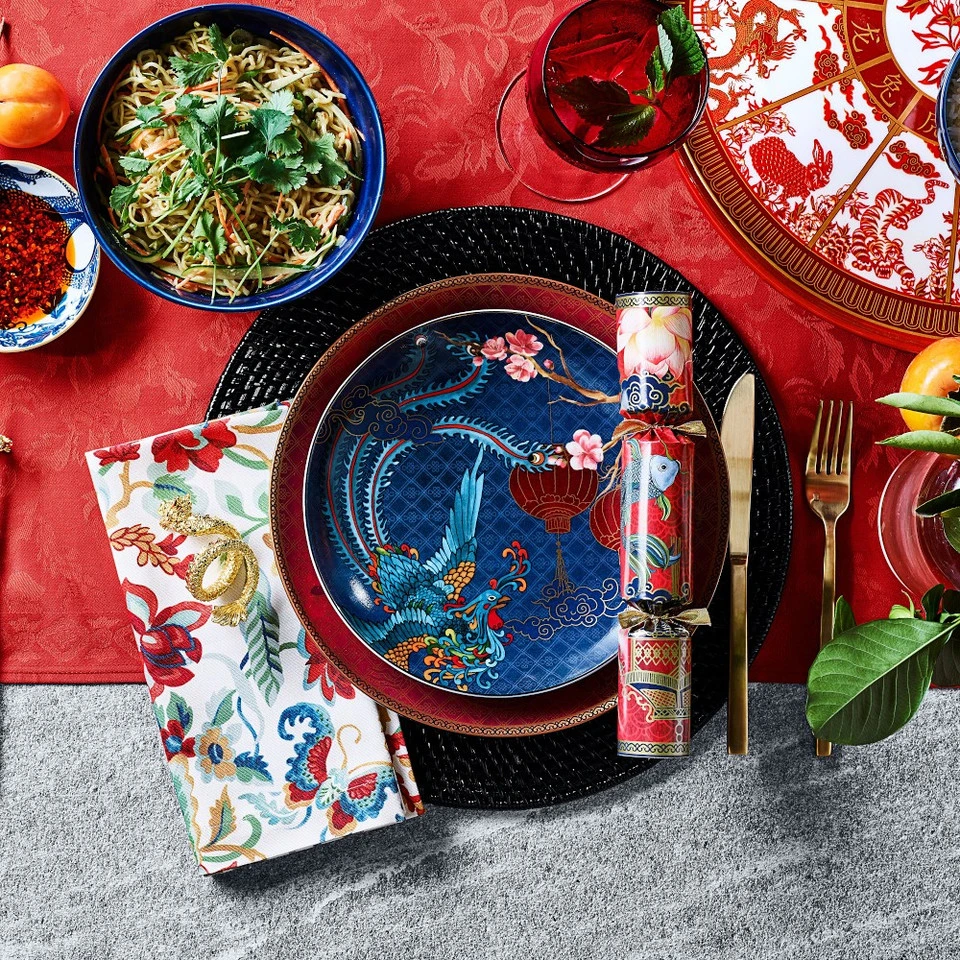Celebrating Lunar New Year, our vibrant dinnerware collection features animals and creatures with significant meaning in Chinese culture. A dragon, phoenix, tiger and koi fish each star on their own gold-rimmed bowl to make any meal more festive.