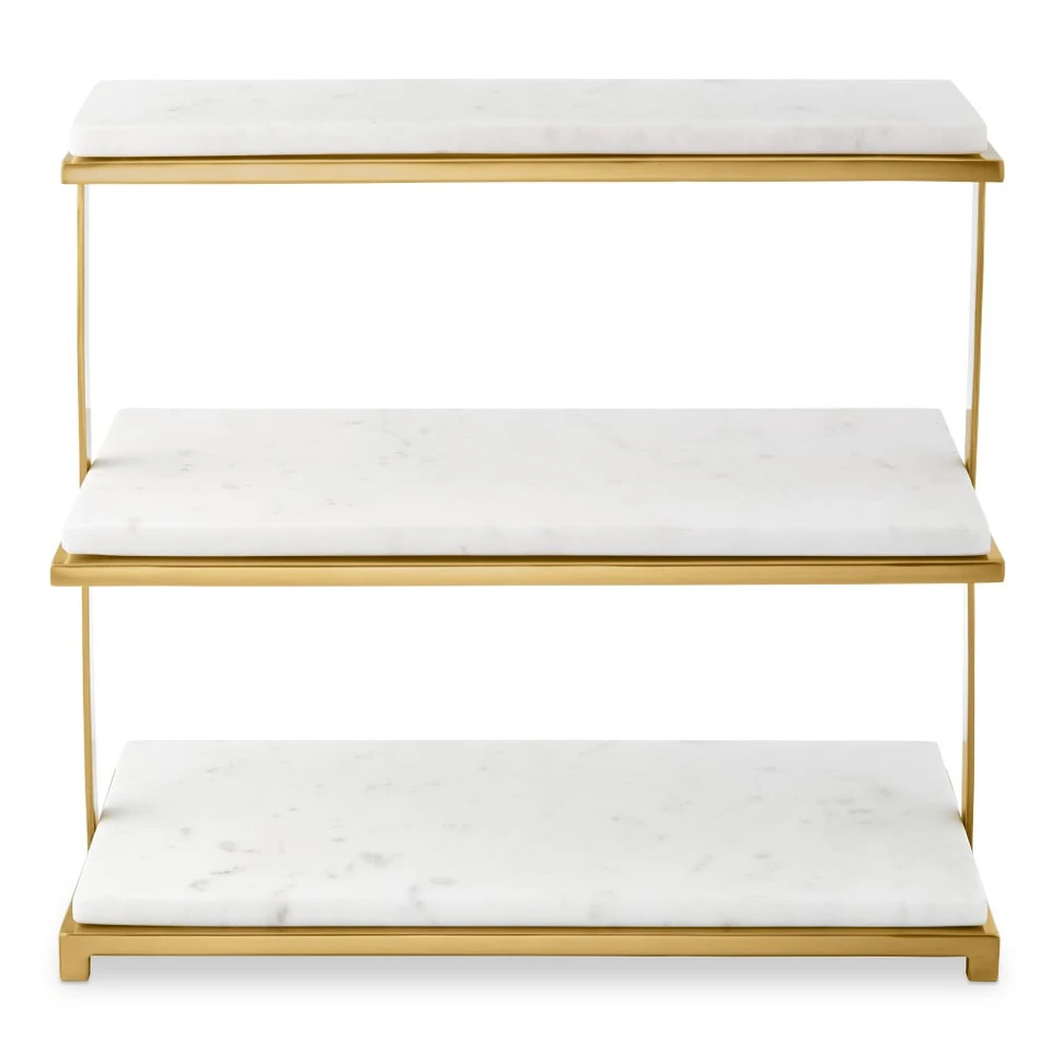 Our tiered stand showcases the rich contrast of white marble and polished brass. Marble’s natural elegance complements everything from hors d’oeuvres to cookies and sweets, while the flat tiers are spaced generously apart for prepping and serving ease.
