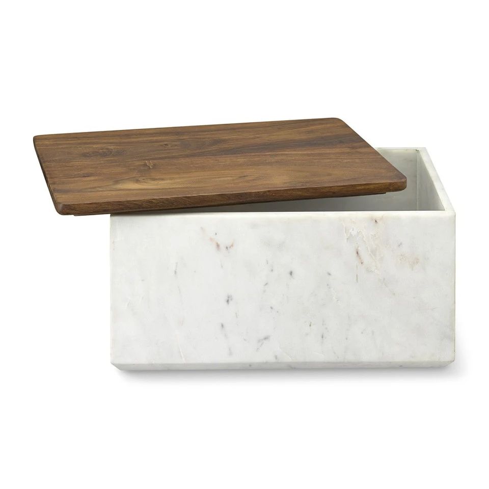 Crafted of creamy white marble, our large bread box brings elegant organisation to the kitchen. Made entirely by hand, the box stores multiple loaves of bread and features a snug-fitting wood lid that can double as a serving tray.