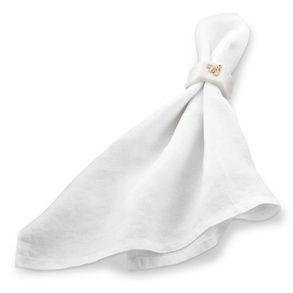 Add a sweet touch to gatherings with marble napkin rings adorned with golden bees. Finished with honeycomb-patterned etching, each hand-carved ring is distinguished by rich natural hues and intricate markings.