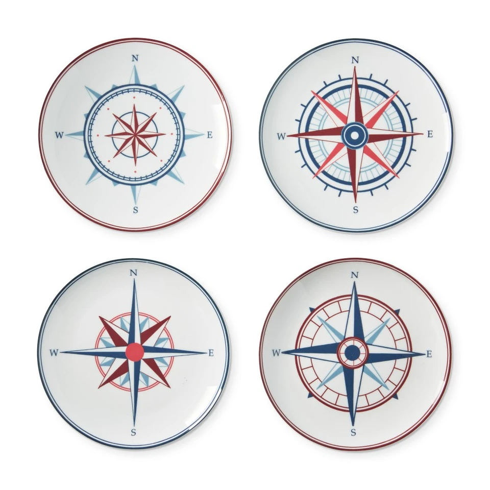 Inspired by motifs of the sea, our Maritime collection makes for smooth sailing at the dinner table. Each piece is crafted in Portugal of high-fired porcelain with a shiny white glaze. These appetiser plates celebrate the nautical compass with four unique, vibrant designs.