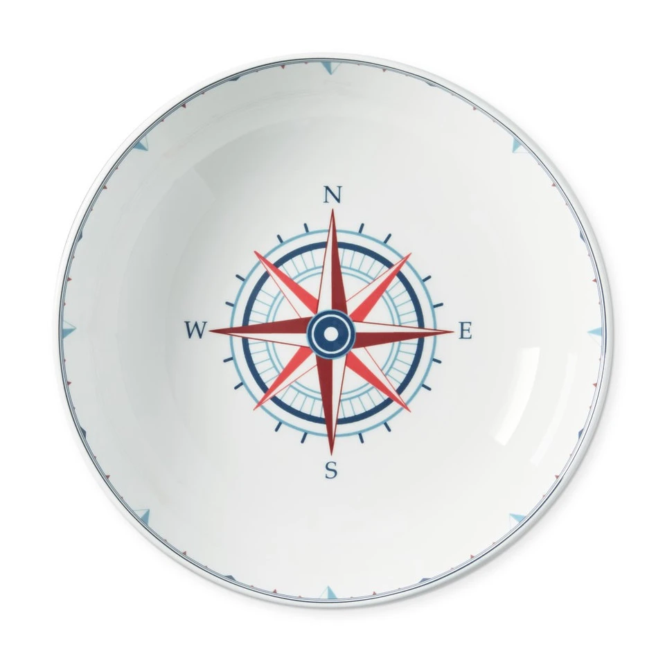 Inspired by motifs of the sea, our Maritime collection makes for smooth sailing at the dinner table. Each piece is crafted in Portugal of high-fired porcelain with a shiny white glaze. This serving bowl celebrates the nautical compass with an intricate, vibrant design.
