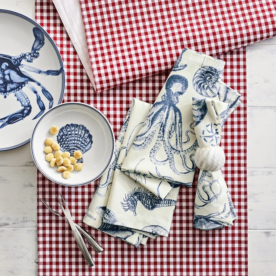 Inspired by motifs of the sea, our Maritime collection makes for smooth sailing at the dinner table. Each piece is crafted in Portugal of high-fired porcelain with a shiny glaze. These petite bowls celebrate anchors and seashells in nautical blue and white hues.