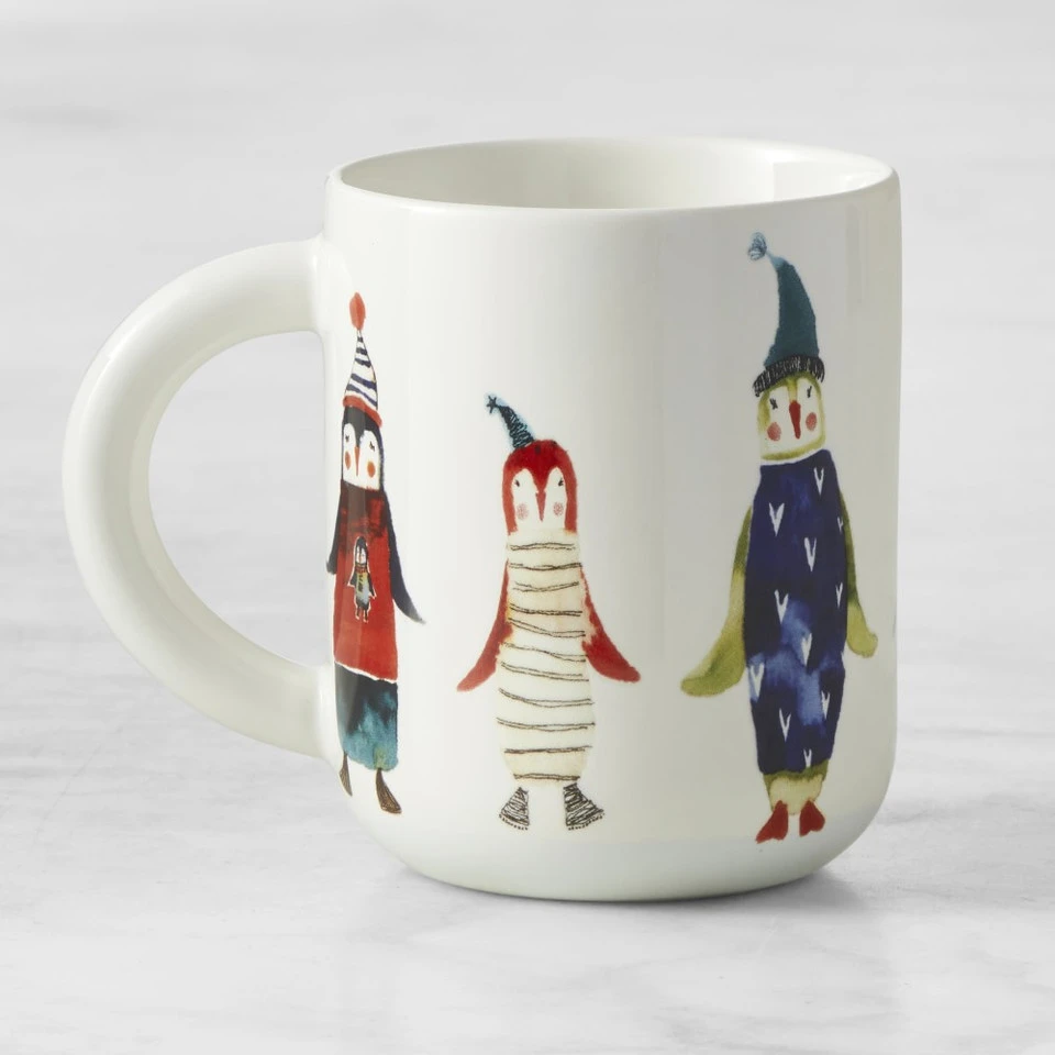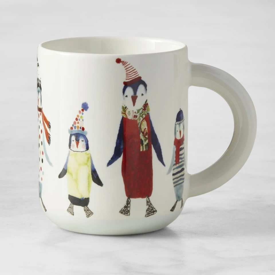 Named for the Italian word for Christmas, our dinnerware transforms whimsical festive motifs into contemporary designs that appeal to guests of all ages. This dishwasher-safe mug is made of durable stoneware and features a parade of penguins, decked out in cheery woollens.