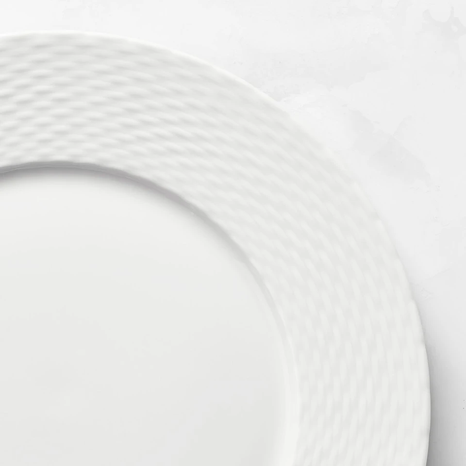 This dinnerware celebrates the beauty in everyday objects; in this case, the willow gathering baskets used in French kitchen gardens. Pillivuyt, the French manufacturer of fine porcelain, developed it for us from one of their archival patterns. New moulds were hand carved by a single artisan in order to ensure consistency of detail. Complementing both casual and formal table settings, the versatile dinnerware is made of porcelain, which is as durable as it is beautiful. Microwavable; oven and dishwasher safe. 28 cm dinner plate. Made in France.