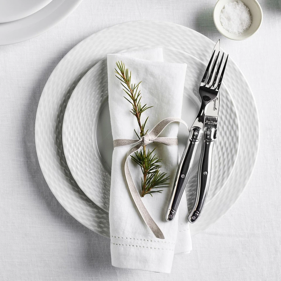 This dinnerware celebrates the beauty in everyday objects; in this case, the willow gathering baskets used in French kitchen gardens. Pillivuyt, the French manufacturer of fine porcelain, developed it for us from one of their archival patterns. New moulds were hand carved by a single artisan in order to ensure consistency of detail. Complementing both casual and formal table settings, the versatile dinnerware is made of porcelain, which is as durable as it is beautiful. Microwavable; oven and dishwasher safe. 28 cm dinner plate; 22 cm salad plate; 23 cm soup plate; 266 ml cup and 16 cm saucer; 562 ml, 15 cm cereal bowl. Made in France.