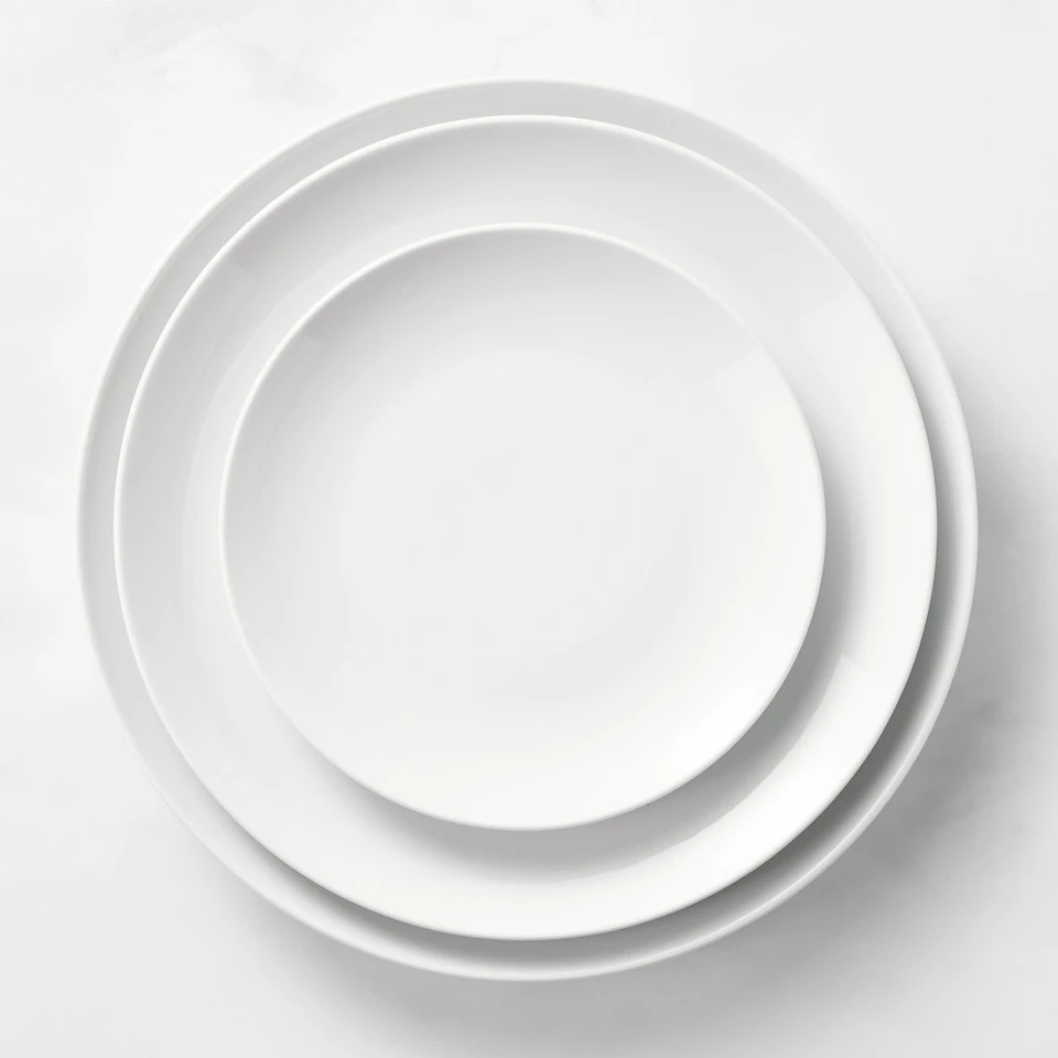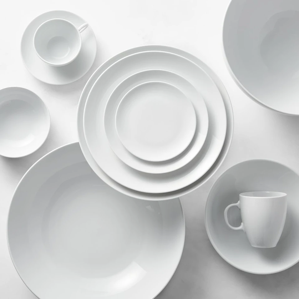 From France, this white porcelain dinnerware is as sturdy as it is stylish. The plates and bowls feature a classic coupe design with a gentle contour and sleek rim. Thanks to an innovative formulation of various clays, the porcelain’s delicate appearance belies its strength. Dressed up or down with formal or casual table linen, cutlery and glassware, this versatile dinnerware coordinates easily with patterned pieces. They’re made in France by Pillivuyt, a company respected for fine porcelain tableware since 1818.