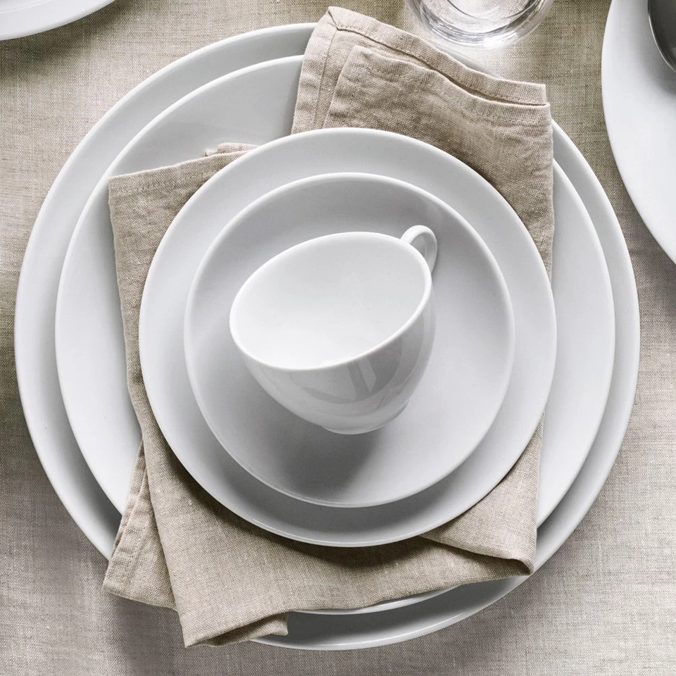 From France, this porcelain dinnerware is as sturdy as it is stylish. The dishes feature a classic coupe design with a gentle contour and sleek rim. Thanks to an innovative formulation of various clays, the porcelain’s delicate appearance belies its strength. Dressed up or down with formal or casual table linen, cutlery and glassware, this versatile dinnerware coordinates easily with patterned pieces. They’re made by Pillivuyt, a company respected for fine porcelain tableware since 1818.