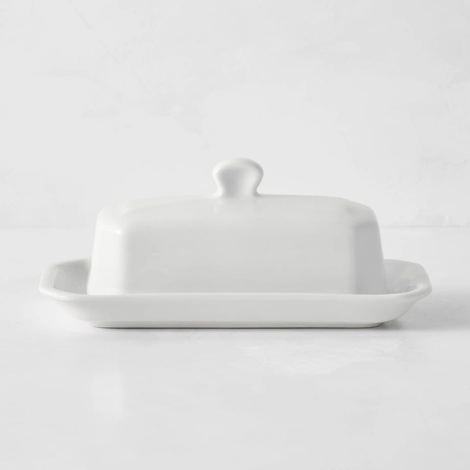 A French classic, this white porcelain butter dish has been a favourite for generations of family meals. As handsome as it is durable, it pairs easily with formal or casual napery, cutlery and glassware, and patterned pieces. Thanks to an innovative formulation of various clays, the porcelain pairs a delicate appearance with superb strength. Made in France by Pillivuyt, a company respected for fine porcelain tableware since 1818. Dishwasher safe. 19 cm x 10 cm x 8 cm high.
