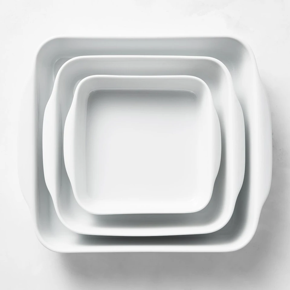 Our glazed bakers turn out beautiful casseroles, cobblers, crisps and more. Durable and chip resistant, they are the perfect choice for oven-to table service and they conveniently nest for compact storage. They’re made in France by Pillivuyt, a producer of porcelain tableware since 1818.