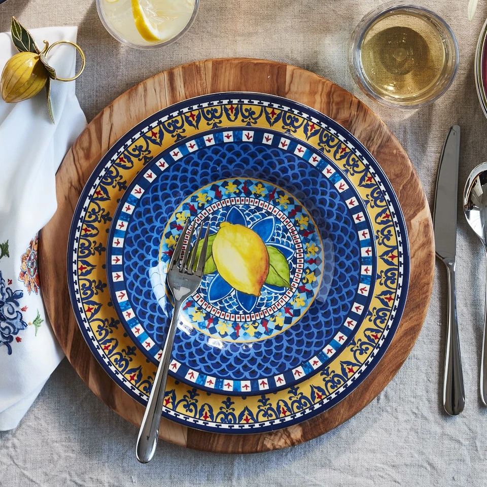 Brilliant Sicilian majolica ceramics have graced the Italian island’s tables for more than 500 years. Our vibrant dinnerware celebrates that tradition with authentic designs recreated in scratch-resistant, shatter-resistant melamine. Exceptional for indoor and outdoor use, these salad plates combine graceful medallions, sun-ripened Sicilian fruit and detailed rims.