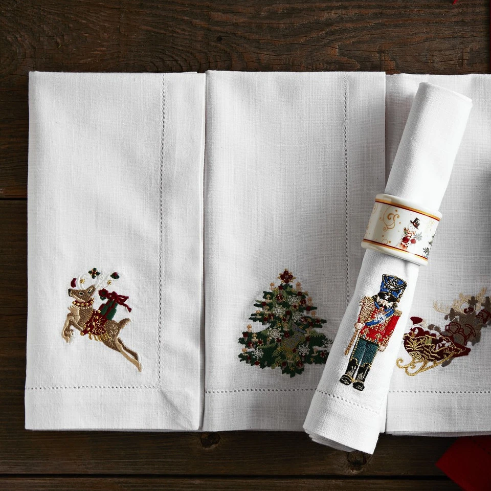Celebrate the magic of the season with our embroidered napkins inspired by the legendary 19th-century poem “A Visit from St. Nicholas.” Each soft cotton napkin is embellished at one corner with a vintage-style icon from our beloved ‘Twas collection and finished with a hemstitched border.