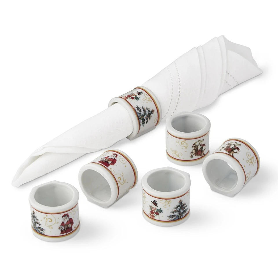 Celebrate the magic of the season with tableware inspired by the legendary 19th-century poem “A Visit from St. Nicholas.” Each collectable napkin ring is decorated with a colourful vintage-style image, highlighted by metallic gold detailing.