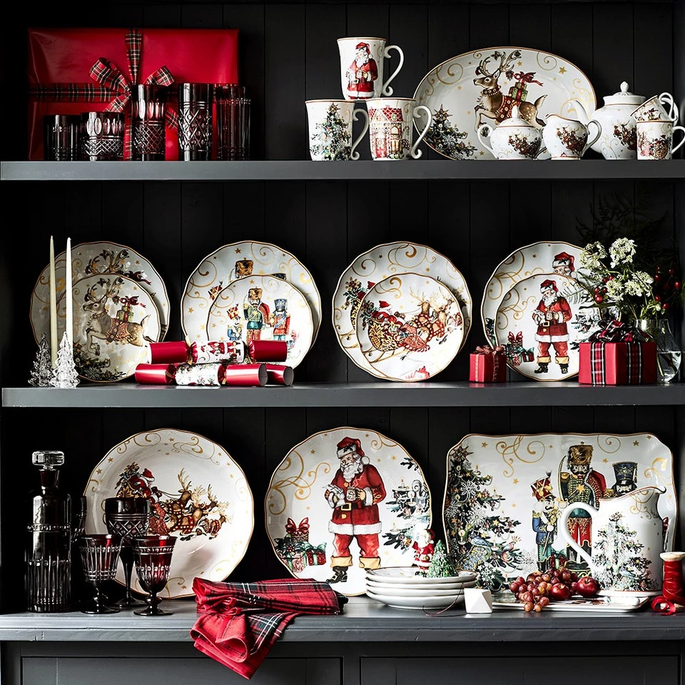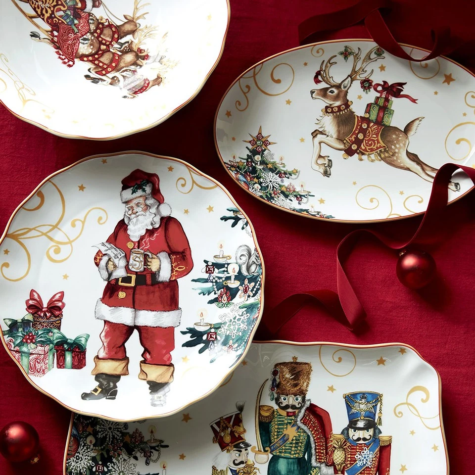 Celebrate the magic of the season with tableware inspired by the legendary 19th-century poem “A Visit from St. Nicholas.” On this collectable platter, vintage-style artwork depicts a colourful scene of exquisitely dressed nutcrackers standing guard. Bordered with a scalloped rim, our durable porcelain platter makes a beautiful presentation for main courses or festive cookies and desserts at your seasonal celebrations.