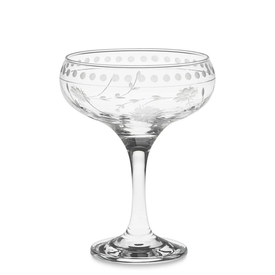 These are the glasses that you’ve always loved on your grandmother’s Christmas table, and that you’ll always want to have on yours. Their design is inspired by a vintage glass that we fell in love with at an antique fair, with hand etching in a stylised floral motif. A traditional way to serve Champagne and sparkling wine, the classic coupe bowls give bubbles a beautiful presentation.