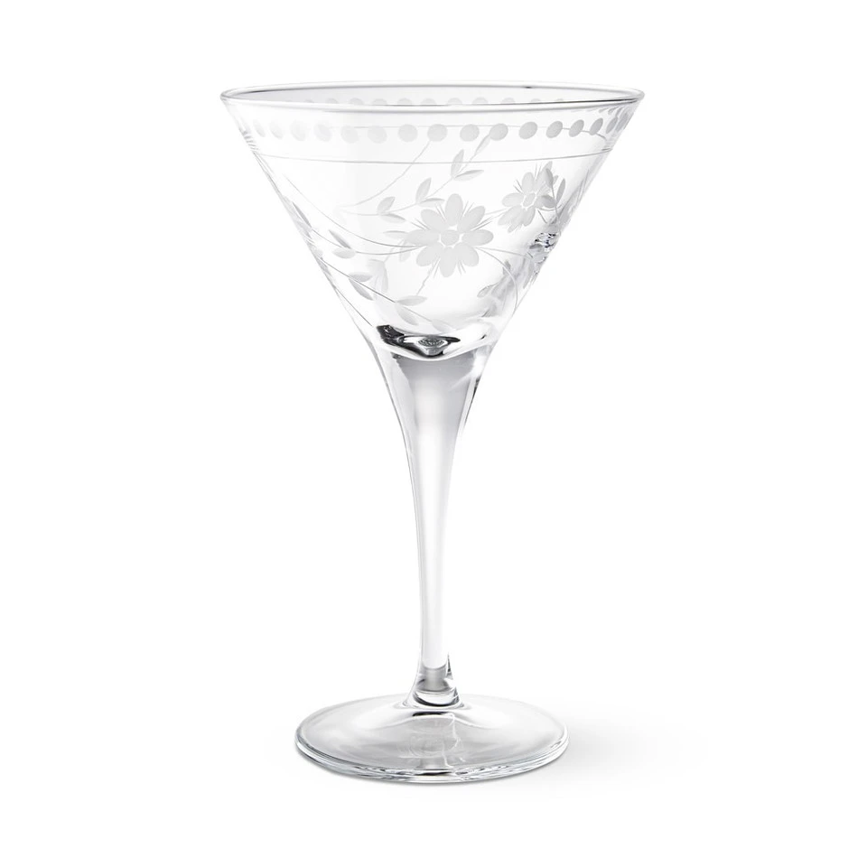 Inspired by a vintage glass that we fell in love with at an antique fair, our martini glasses are graciously embellished with a hand-cut, stylised floral motif. A charming choice for cocktail parties and formal entertaining, they’re durable enough for everyday use.