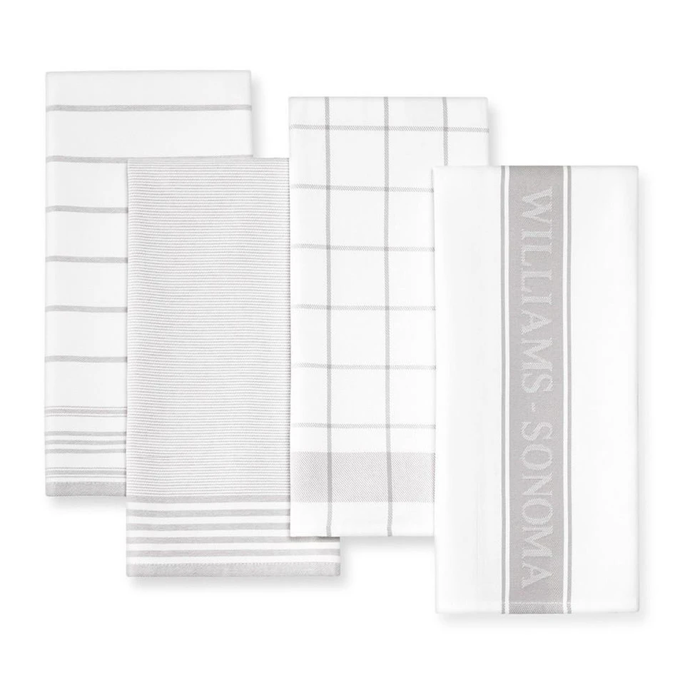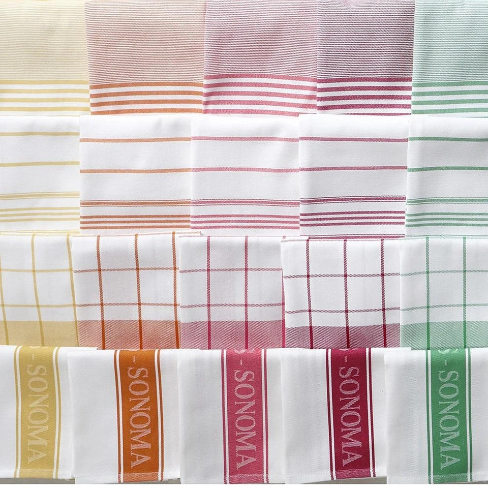 We’ve updated our popular tea towel set with four fresh patterns and an array of vibrant hues. Loomed from yarn-dyed Turkish cotton, the set features pinstripes, wide stripes, windowpane plaid and our signature logo design, all in a high-density twill weave with superior absorbency and a smooth touch. Laundering and use only improve them, so you can count on them for years of exceptional service.