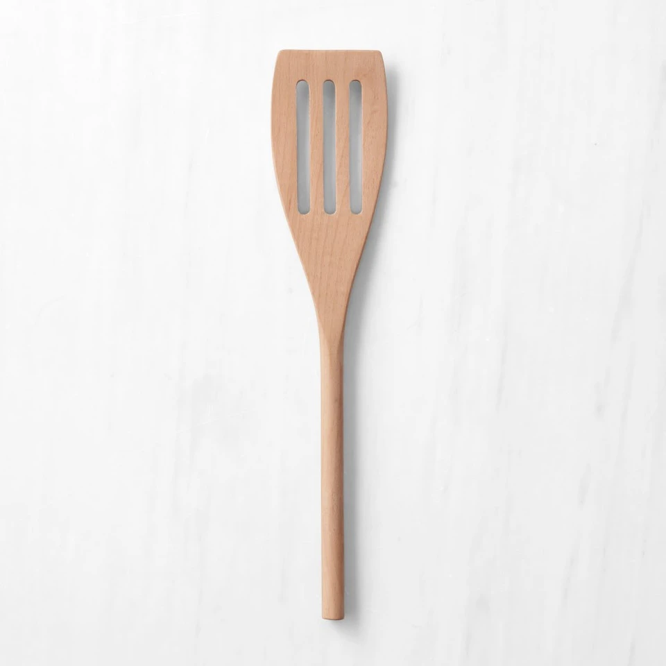 Life in the kitchen is easier when you use the right tool for the task. Perfect for turning, lifting and transferring foods when you’re cooking or baking, our sturdy wooden spatula has a perforated blade that allows liquids to drain through.