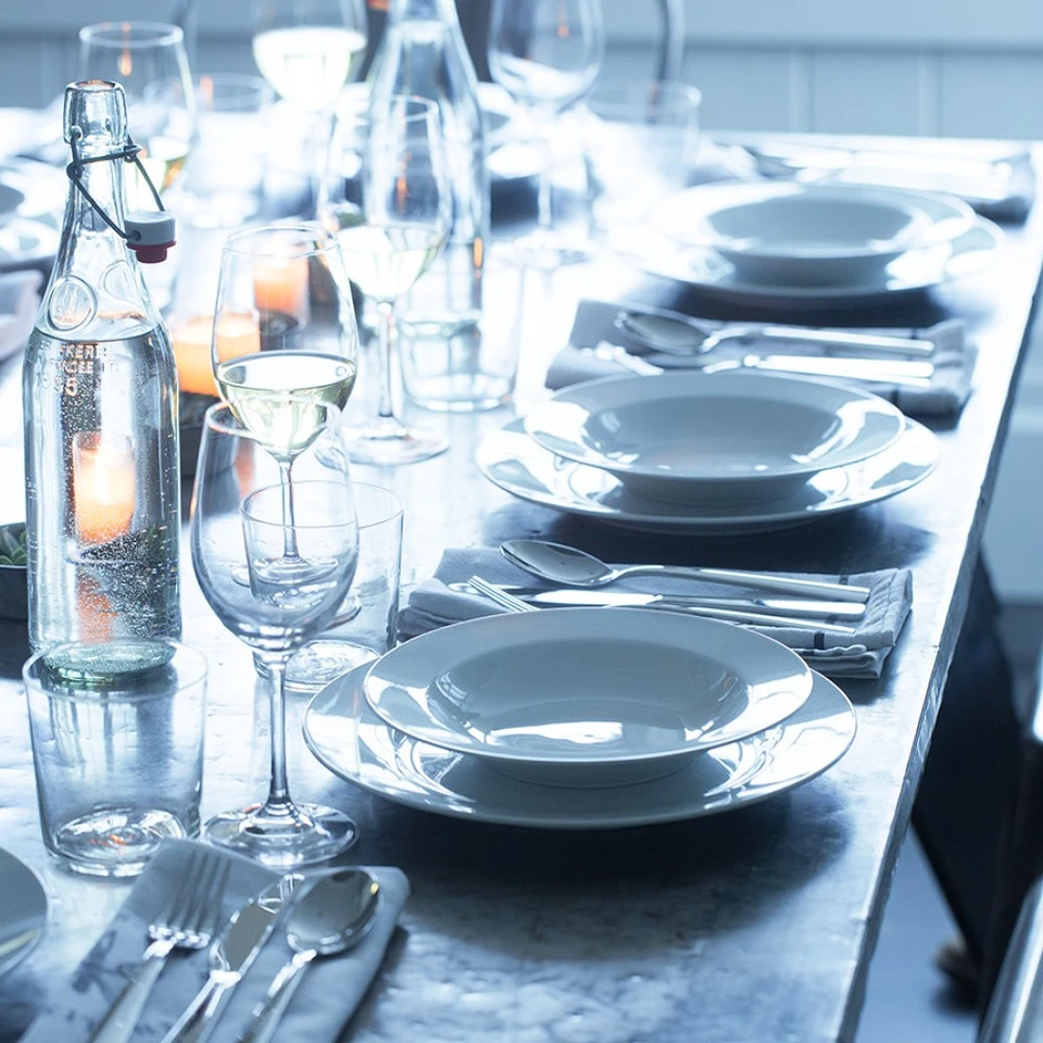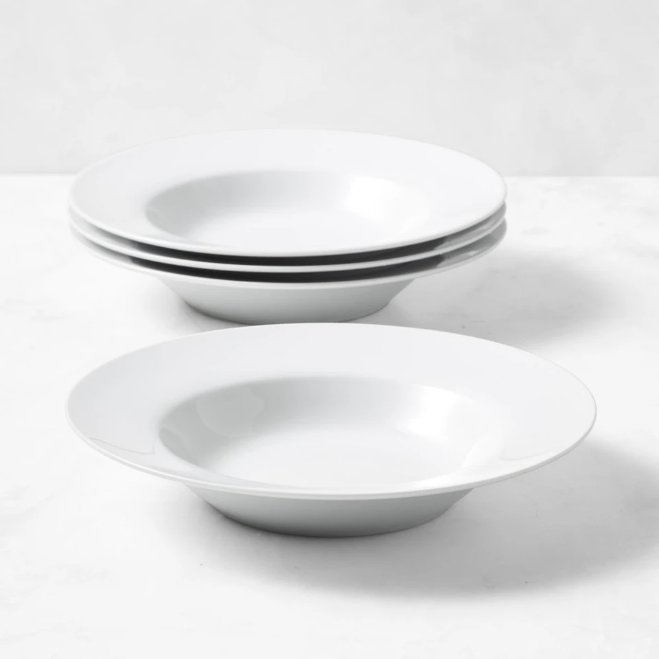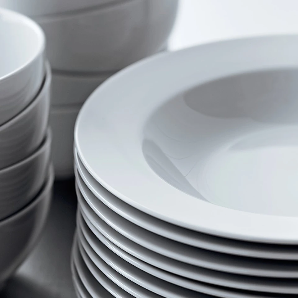 The perfect everyday dishes, our sturdy, affordable porcelain bowls are designed for relaxed meals with family and friends. Their classic white colour shows off your food beautifully – and is great for mixing and matching with other dinnerware and serving pieces. Ideal for serving soups and stews, these shallow, wide-rimmed bowls also work well for pastas and risottos.