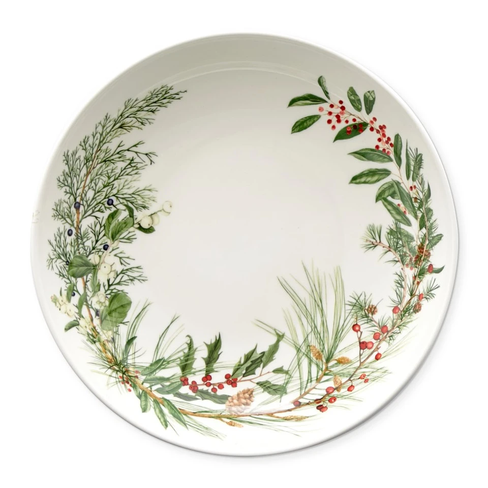 Winterberries, pine branches and pinecones embellish our serving bowl with an inspired blend of colour, line and shape. A stunning addition to the table, it presents salads, pastas and more with festive, natural beauty.